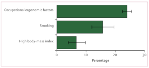 Lower back pain (LBP) stands as the foremost cause of disability globally, impacting more than 600 million people worldwide. New research published in June 2023 found that if society could directly address three major risk factors – obesity, smoking and workplace ergonomic factors – it could cut the burden of low back pain by 39%.